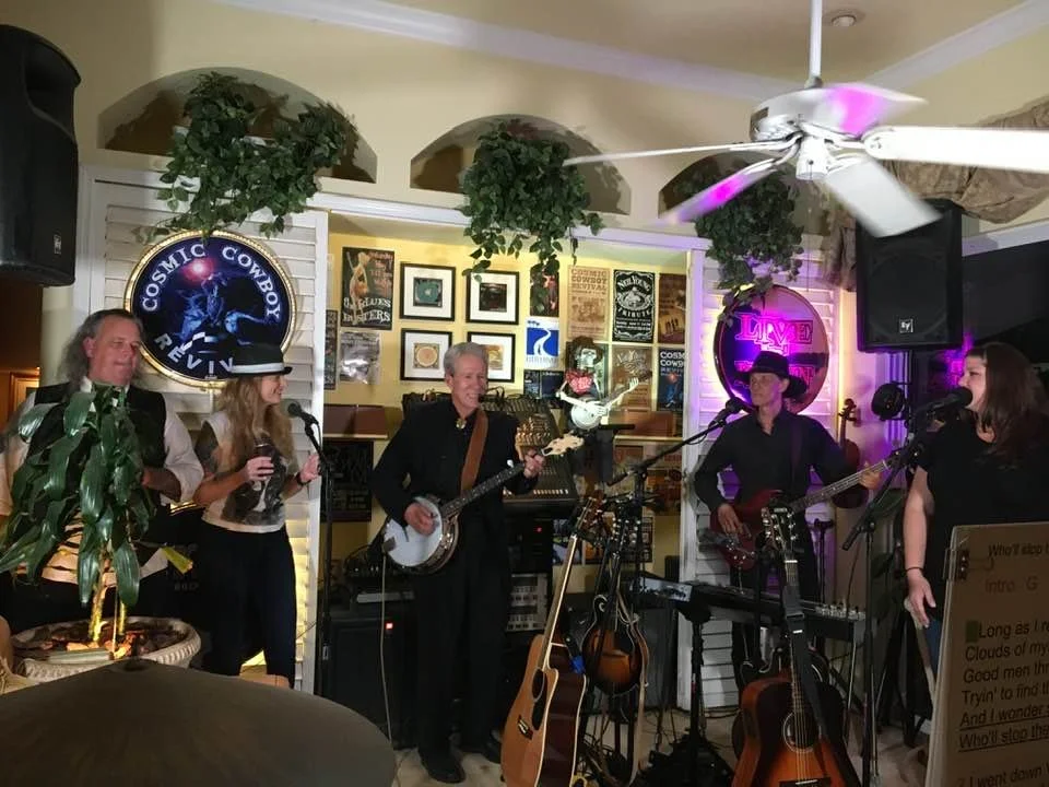 Bruce Andersen started playing the guitar when he first heard Bob Dylan’s Highway 61 revisited. After several bands he ended in the Sound Caravan that played in clubs in South Florida. Since then he has played in many bands over the years. In 2005 he formed the Bluesbusters who played in Orlando area clubs and released three original cd’s. After that he performed as a solo act as the Neil Young Tribute for several years. Recently he formed the Cosmic Cowboy Revival, an Americana band where he played the guitar, harmonica, banjo, mandolin and Dobro.